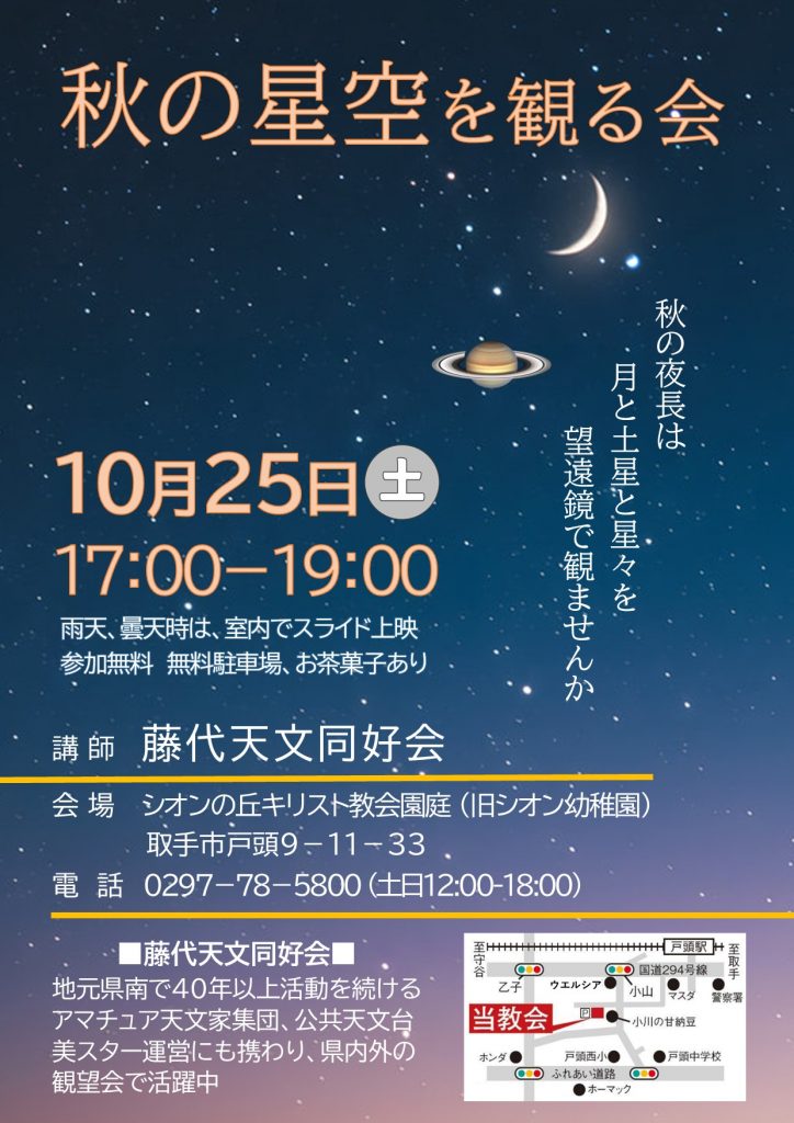 取手市内にある藤代天文同好会のご協力により「秋の星空を観る会」を致します。